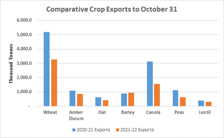 Figure 2. Comparative crop exports to October 31