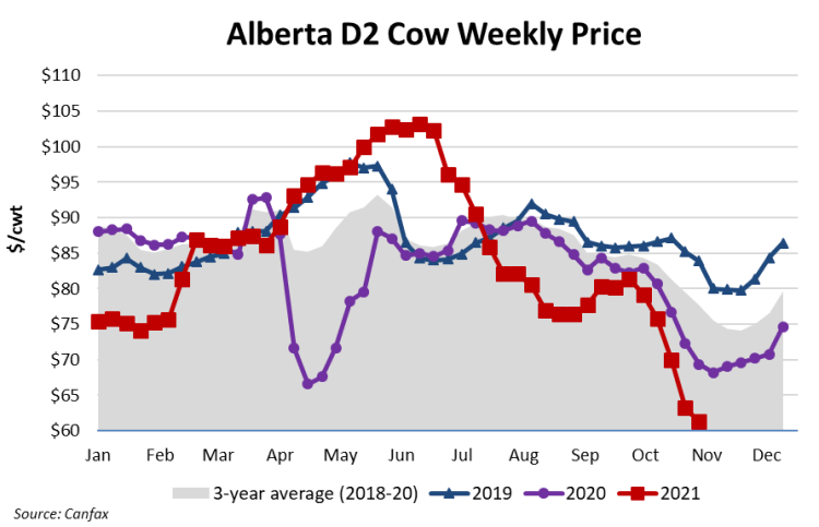 Figure 2. Alberta D2 cow weekly price