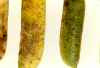 Photo: Evans | Picture description "Greasy" severely damaged pods and leaves. |