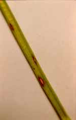 Photo: McDonald | Picture description Lesions on carrot leaf stems. |