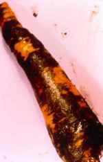 Cavity spot occurs on both parsnips and carrots. Tonnage of the crop is not reduced but the cavities make the roots unmarketable. The disease occurs on carrots grown on mineral or peat (muck) soils.
