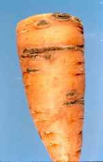 Photo: Evans | Picture description Scab lesions on the carrot surface. |