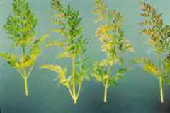 A common disease in carrot production, it causes losses from trace levels to 10% or more in the unharvested crop. Affected carrots have yellowing leaves and the carrot tap root produces masses of fibrous side roots making it unmarketable. This disease is spread by leaf hoppers that move into the province every year from the central U.S. Aster Yellows affects canola, onions, parsnips and faba beans as well as flowers, forage and field crops.