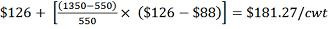 Consider a case where the anticipated fed steer price is $126/cwt, the average cost of gain in the industry is $88/cwt, and the average slaughter weight is 1350 lb. According to the feeder price formula, the price for a 550 lb steer calf could be predicted as follows: