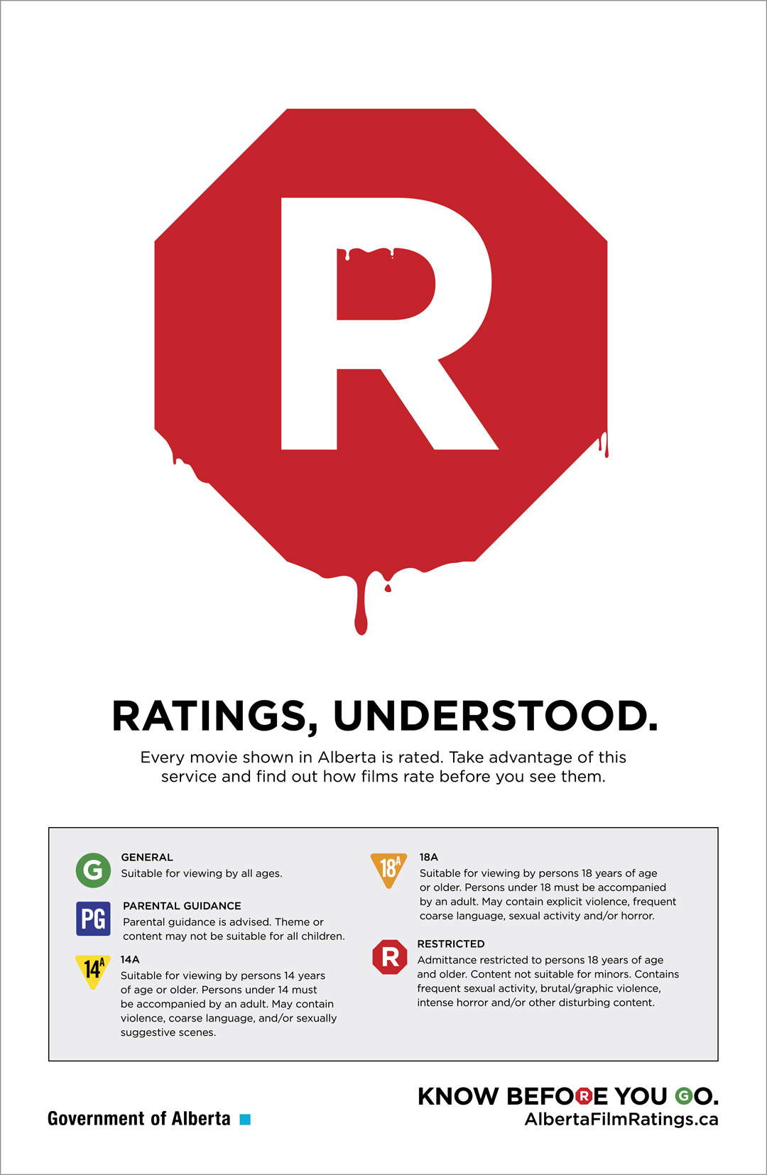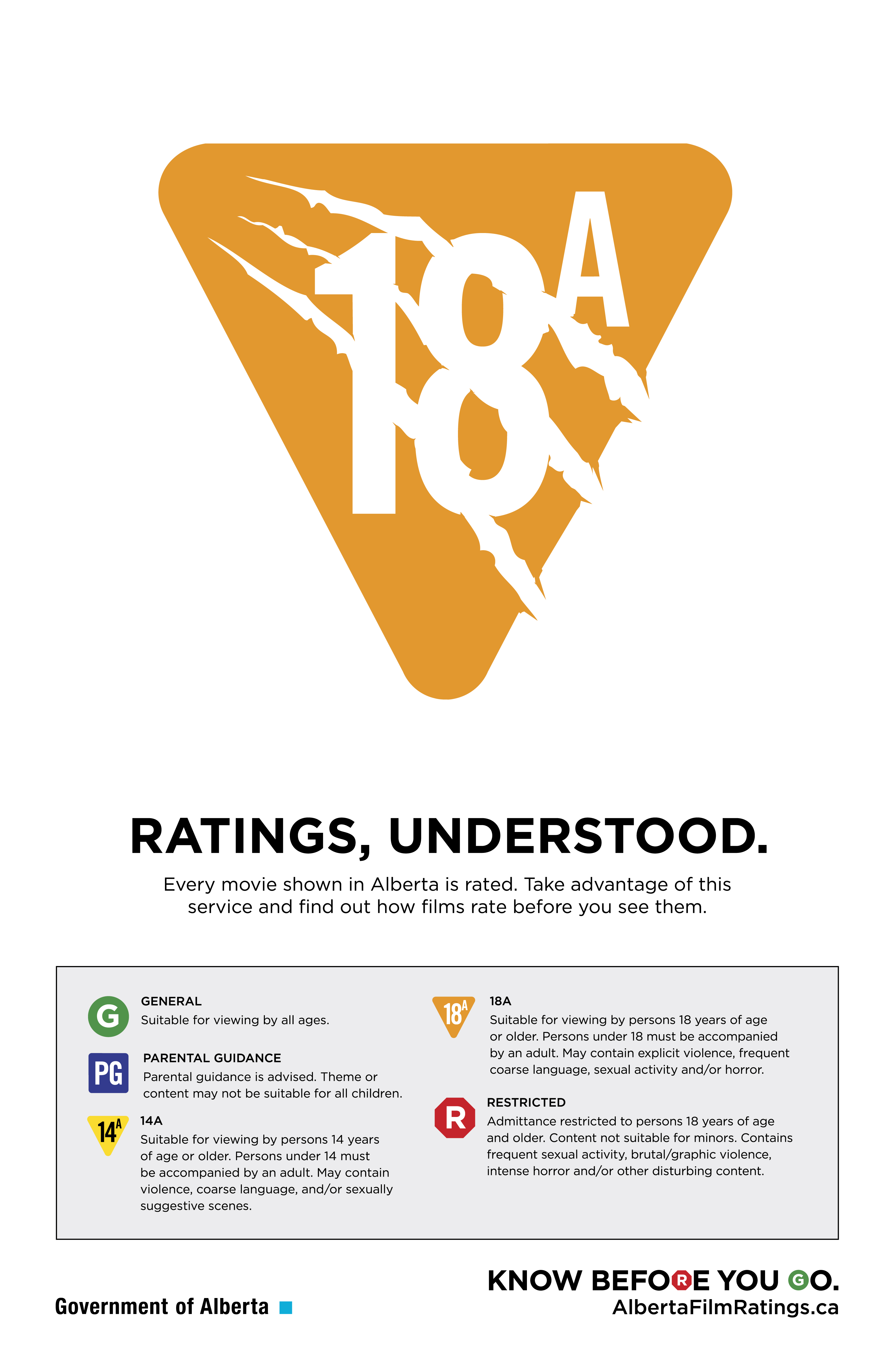 Download official Alberta Film Classification posters for age-based ratings for display in venues as required.