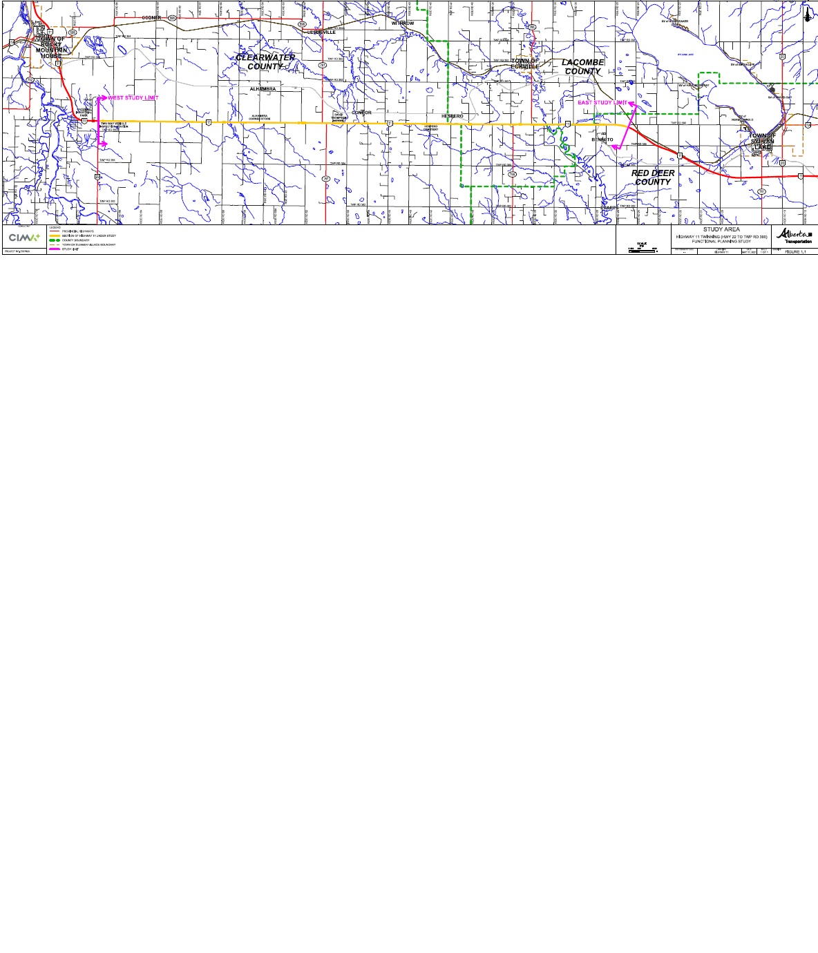 The project will be built in phases as shown on the Highway 11 twinning webpage. The sections closer to Sylvan Lake, Projects C and D, and closer to Rocky Mountain House, Project A, will be twinned first. The remaining section, Project B – the largest and the focus of this planning study – will be twinned after the first 3 projects. Projects C and D have already been completed and Project A is currently in design phase. See the attached map of the study area.