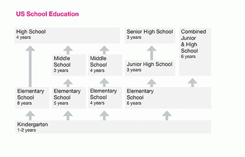 School education spans 12 grades. Students spend from 5 to 8 years in elementary education, followed by 4 to 7 years of secondary education. They have to meet credit and exit examination requirements prescribed by the state education authorities in order to graduate and receive the High School Diploma.