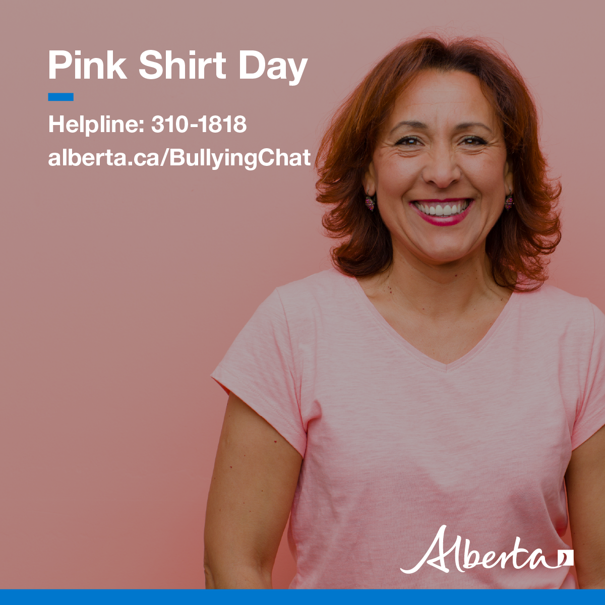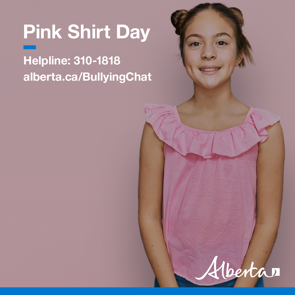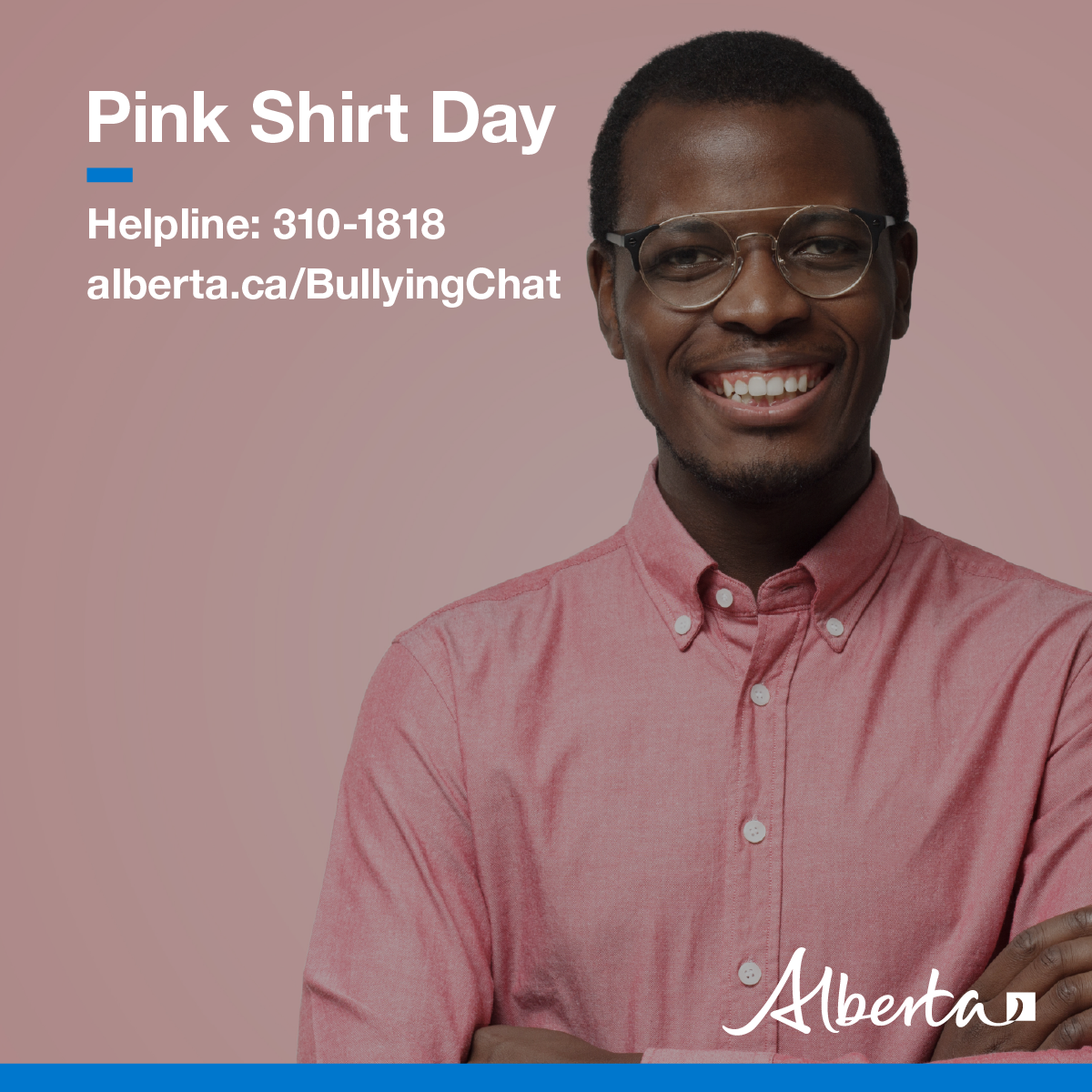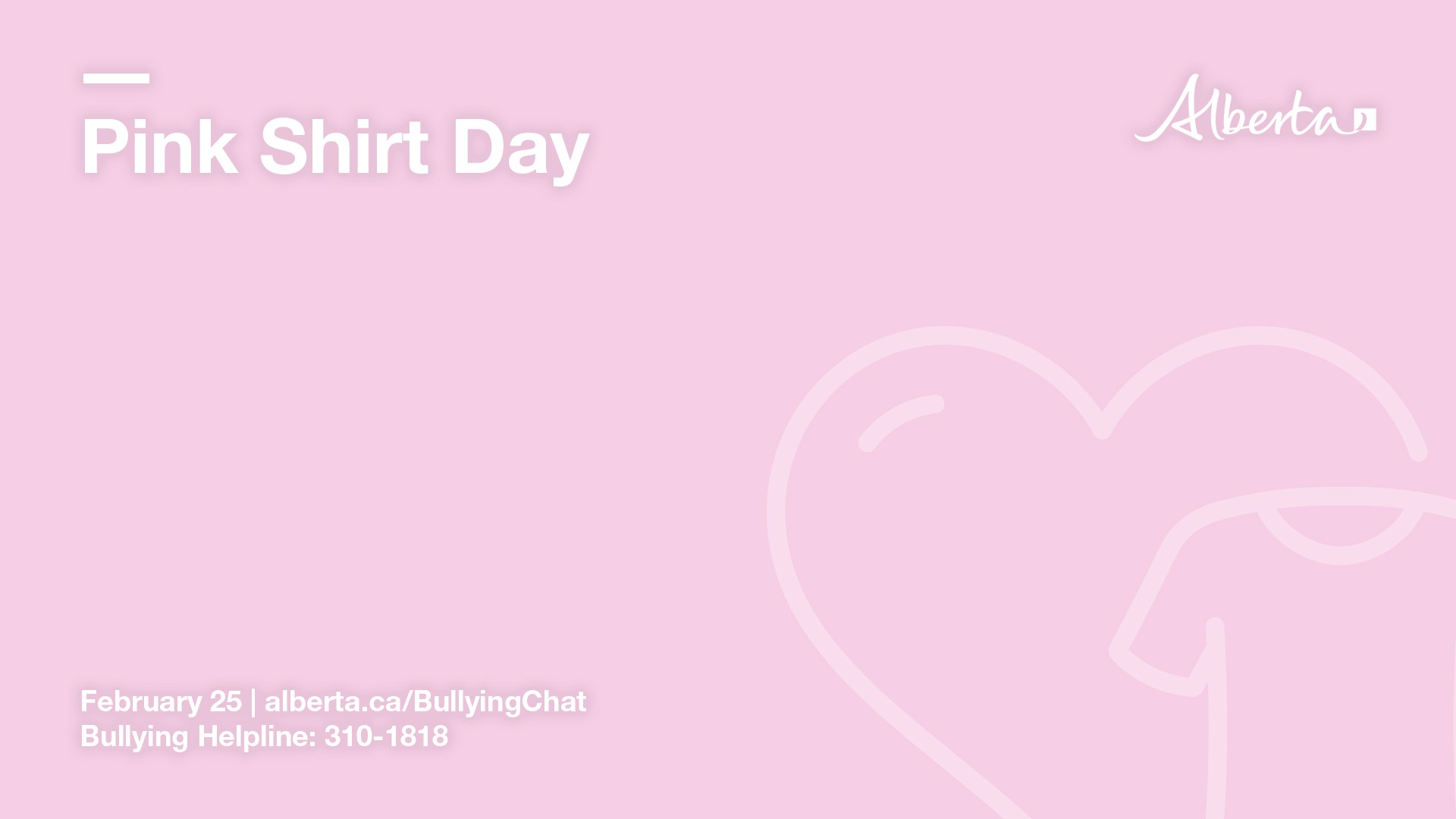 Pink Shirt Day encourages Albertans to be inclusive, welcoming and supportive with colleagues, clients, friends and family. Building healthy relationships is one of the best ways to prevent bullying and create safe environments. Getting involved is easy. Wear your pink shirt, take a photo and share it on social media with the #PinkShirtDay hashtag.
