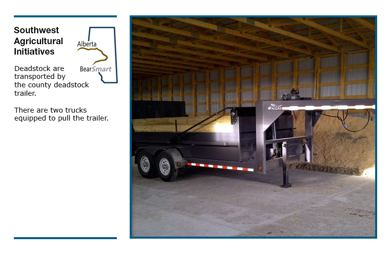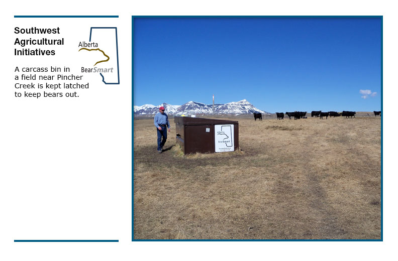 Deadstock storage bins have been installed on properties in Cardston County and the M.D. of Pincher Creek. Local ranchers can store livestock carcasses in the bear-resistant storage bins until they can be picked up by the rendering company.