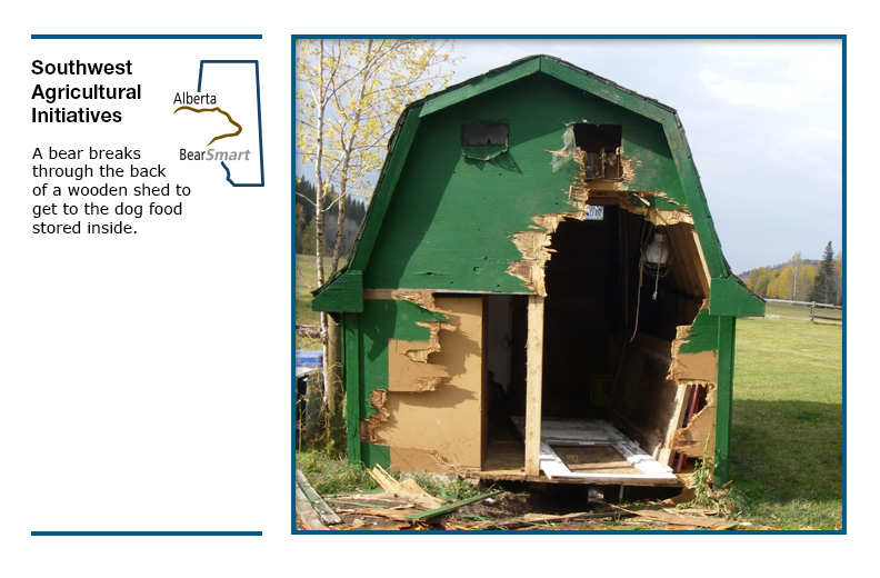 Traditional grain bins provide little resistance to a hungry bear, and the livestock feed inside offers the bear an easy, high-calorie reward