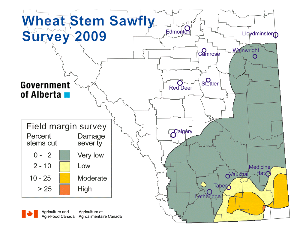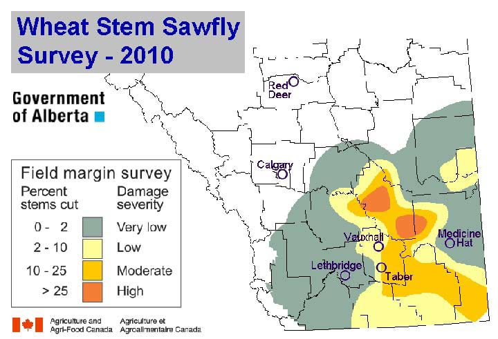 This is not a forecast. It is a summary of the wheat stem sawfly situation in Alberta in fall 2025.